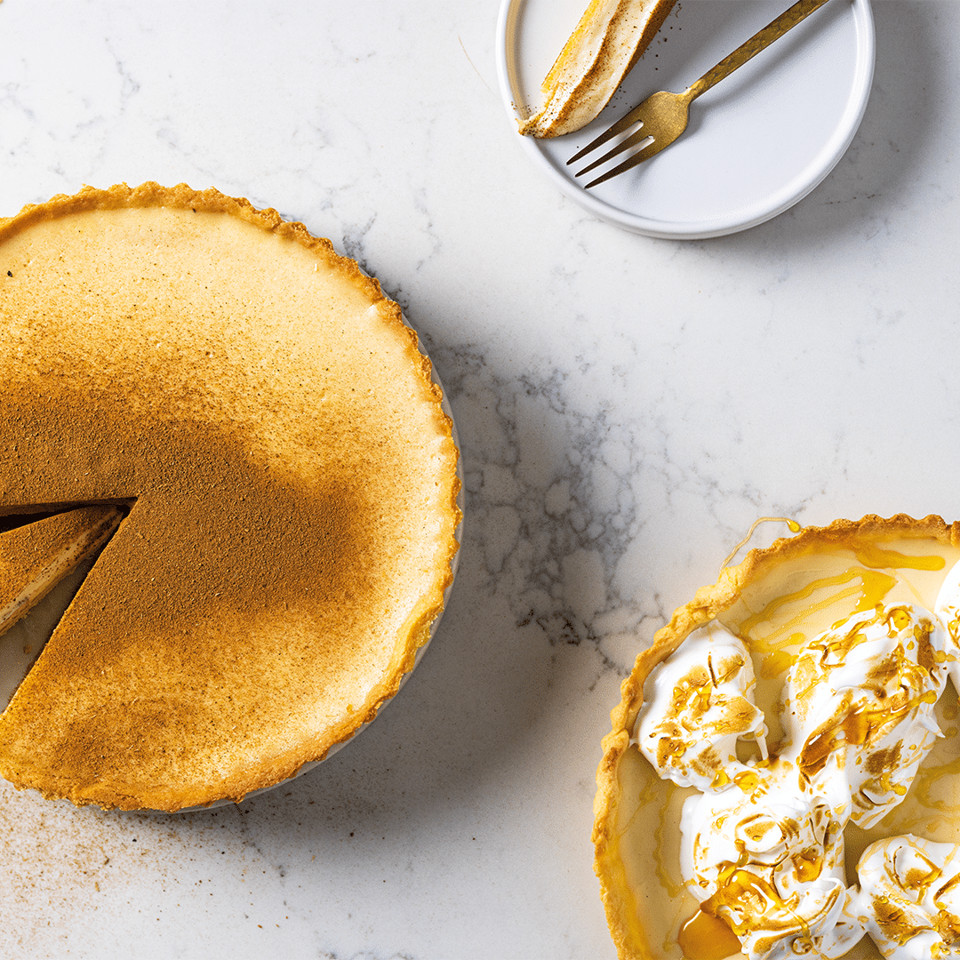 The zingy duo: Lemon milk tart meringue pie