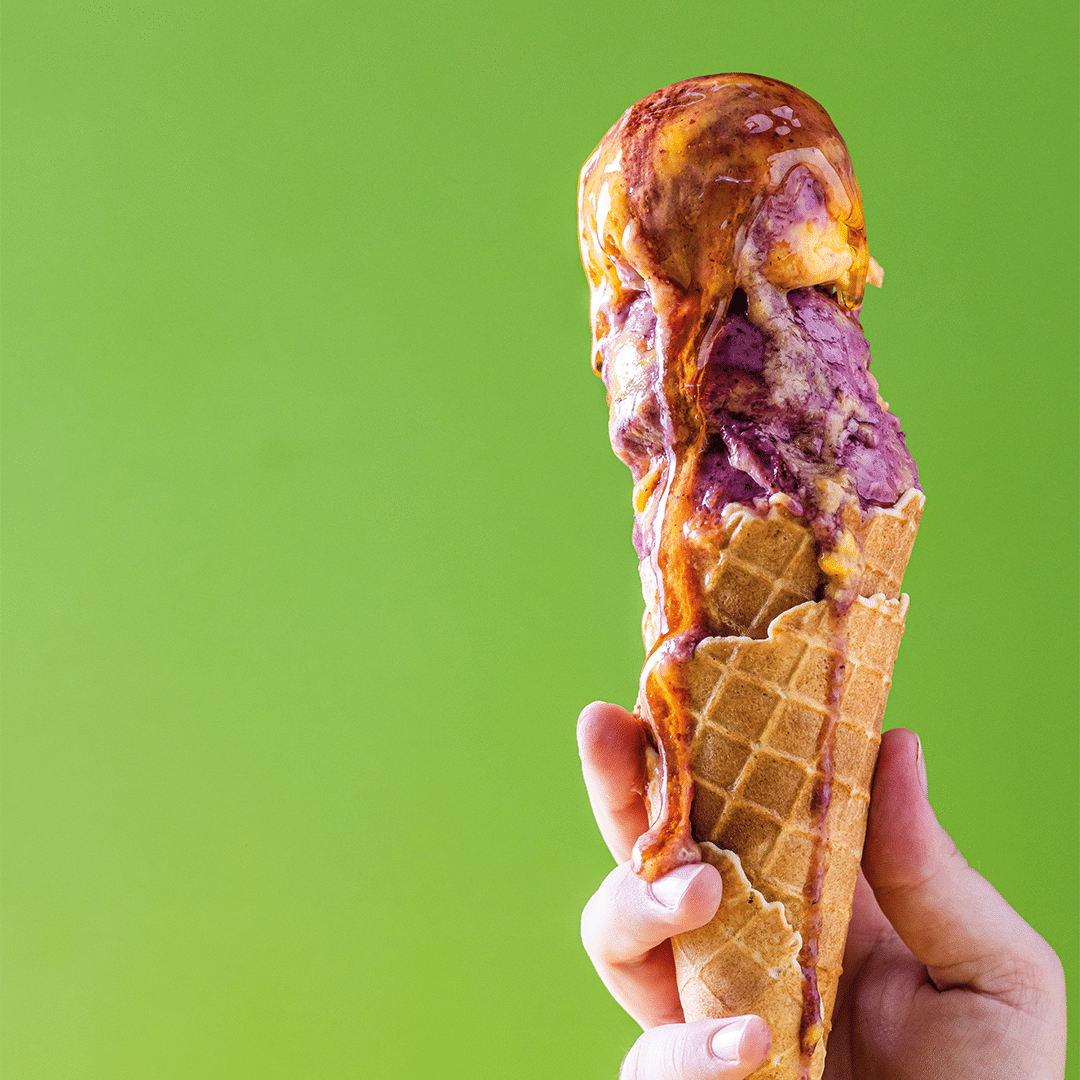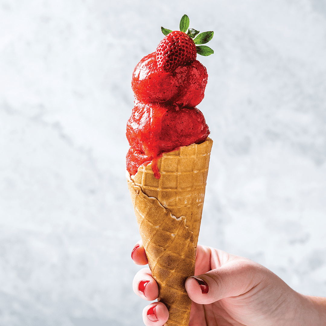 - Serve scoops of the sorbet in ice cream cones, garnished with fresh berries and topped with mint.