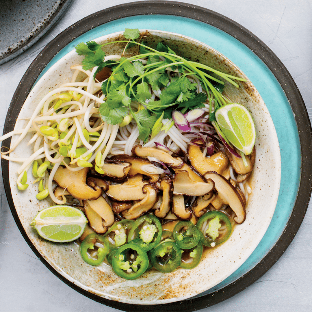 - Ladle the broth into 4 bowls, add the cooked noodles and mushrooms. To serve, top with fresh ingredients of your choice.