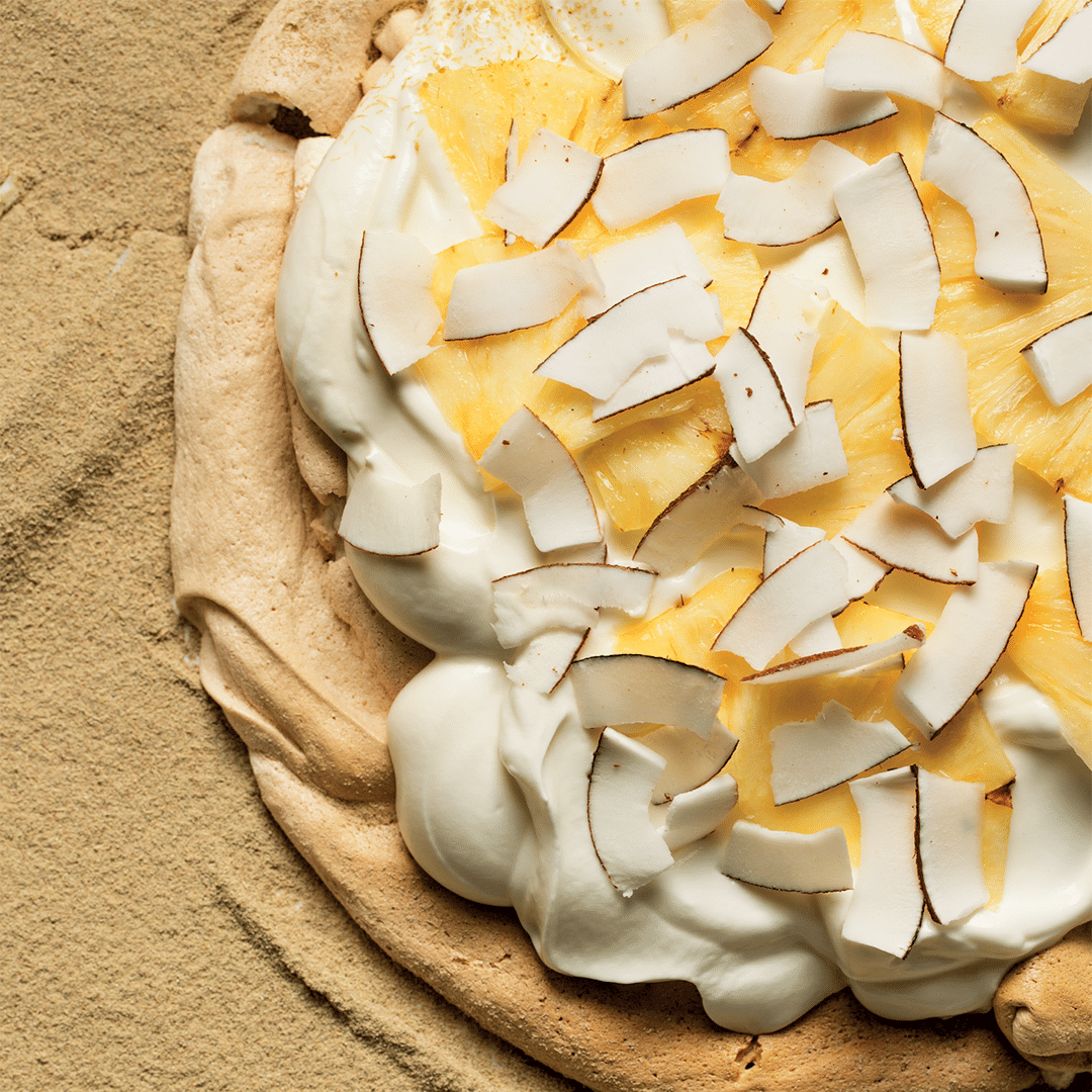 8. For the coconut cream, remove the solid layer of the coconut cream and mix it through the yoghurt. Dollop on top of the meringue.