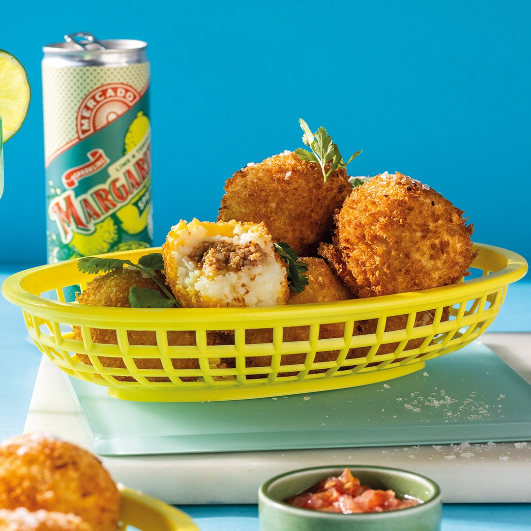 - Fill with about 2 tsp pork and chorizo filling and close potato around filling, smoothing into a ball. Allow to set in the fridge for 20 minutes.