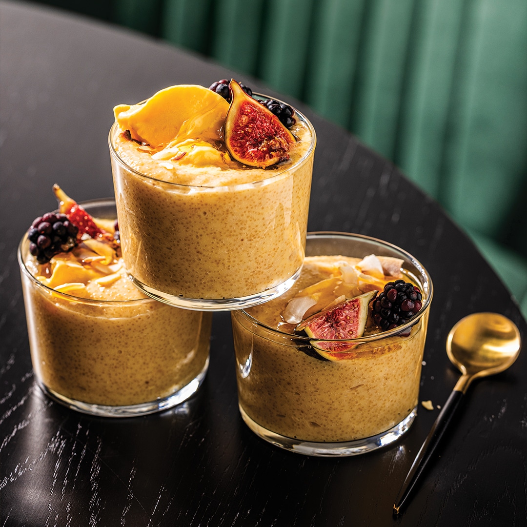 A sweet, tropical twist on a classic, where creamy amaranth meets juicy mango for a spoonful of sunshine.