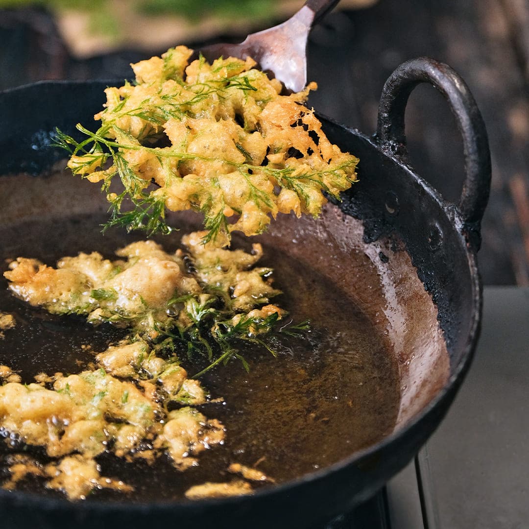 Chilli bite-dipped carrot top fritters