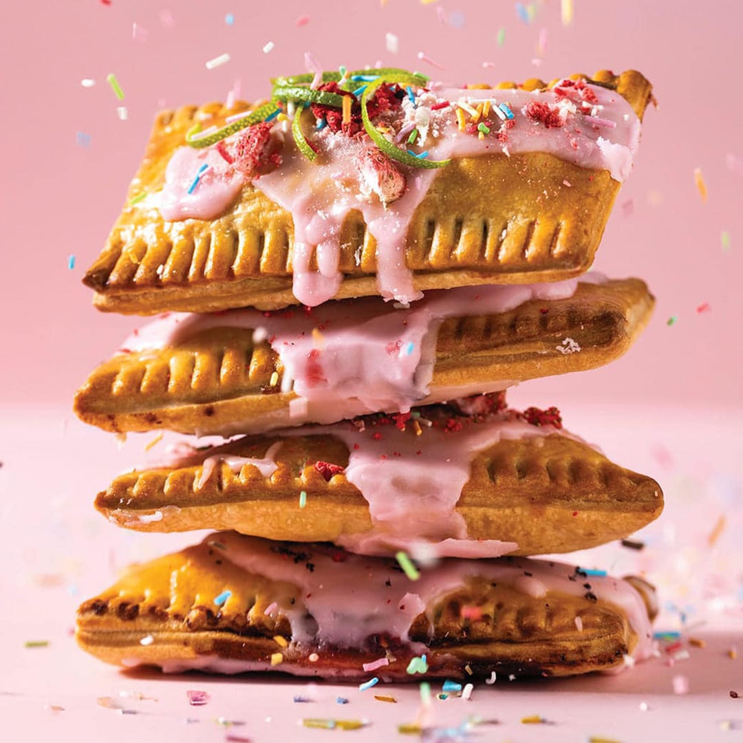 11. Spoon icing over tarts. Top with freeze dried berries, lime zest and some sprinkles. Serve warm or cool and store in an airtight container in a cool, dark place for up to 2 days.