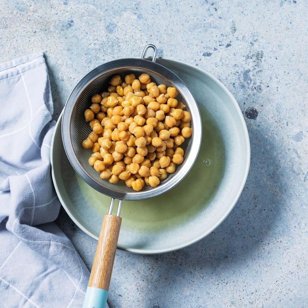 - Drain chickpeas and reserve the aquafaba. (1 can of chickpeas generally has 100ml-125ml of aquafaba.)