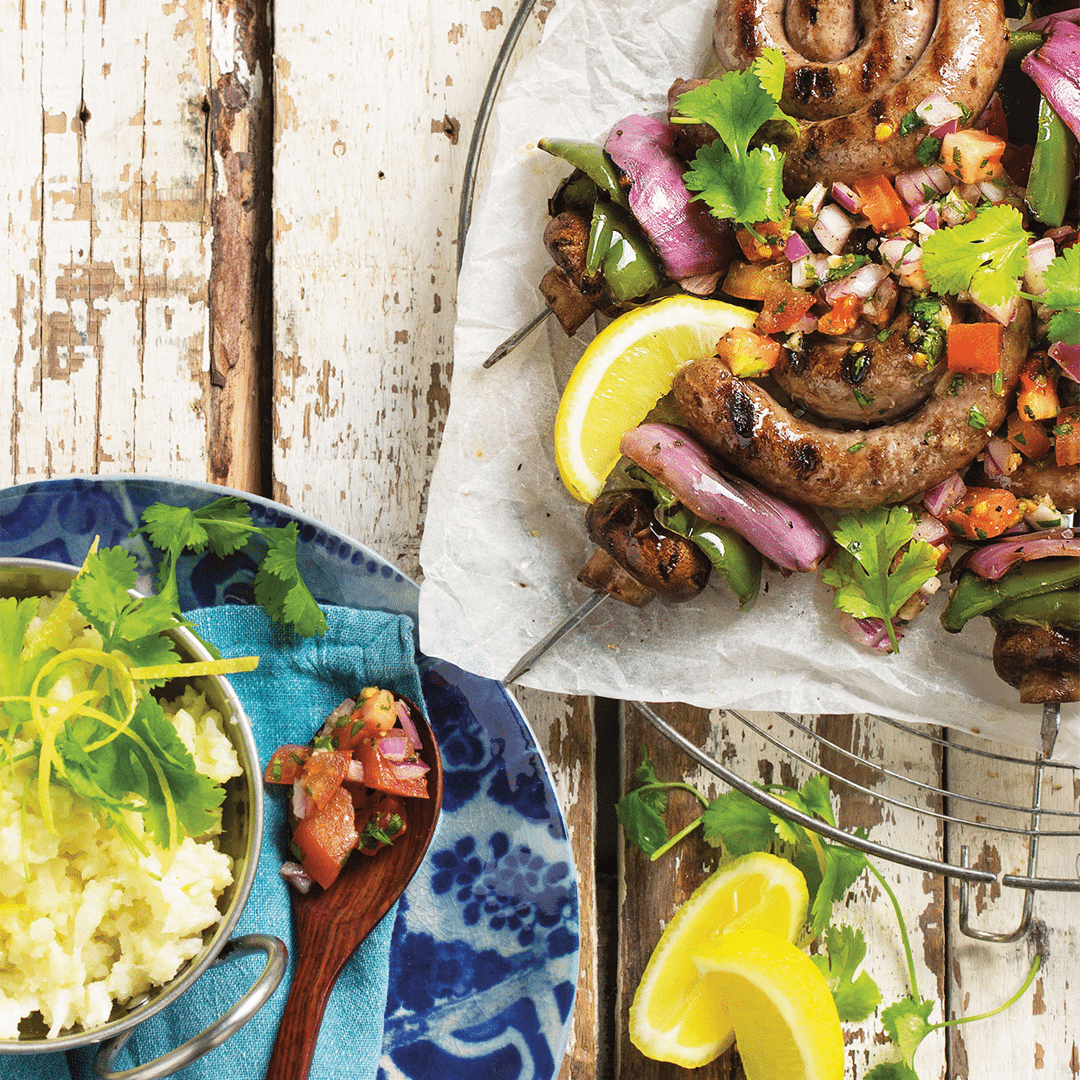 - Serve with the cauliflower pap with wors skewers, with lemon wedges on the side.
