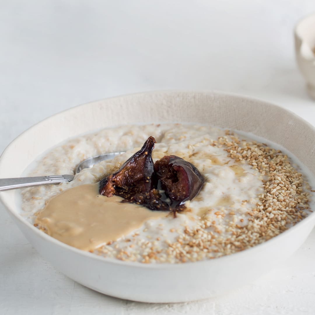 - Serve the oats topped with the fig jam. Sprinkle with extra sesame seeds.