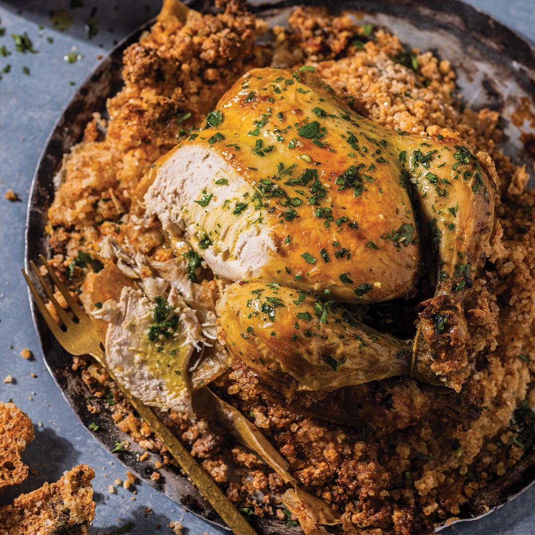Crack open the chicken and uncover the magic of theatrical dining. Encasing the chicken in a thick layer of salt results in the most tender chicken, where the meat is gently steamed in its own juices while cooking.