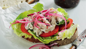 You can never got wrong with a classic chicken mayo sandwich! Especially one made with sourdough bread and pickled red onions.