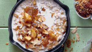 We could happily eat a bowl of oats all year round. But this recipe with apple sauce takes the cake! We even spiked it with a tot of whiskey. (optional)