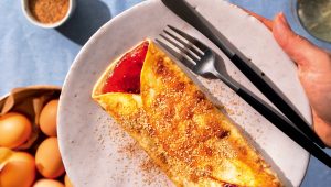 Brinner is served! There’s nothing quite like an al fresco breakfast, and what better start than these sweet egg wraps with cinnamon and strawberry jam?