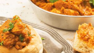 Originating in Durban, this traditional South African staple is an all-time favourite! Attempt it yourself with this chicken curry bunny chow with carrot pickle.