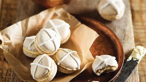 It wouldn’t be Easter without hot cross buns, but how about a fresh take on this classic with hot cross bun macarons and buttercream icing?