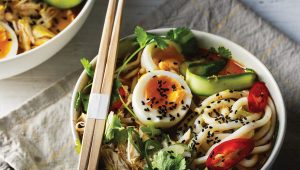 Nourishing spicy coconut chicken noodle soup
