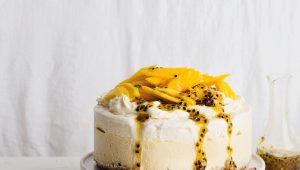 Granadilla ice cream cake with hot cross bun crust