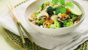 This raw veggie salad is beefed up with raw, unsalted cashews. They’re high in monosaturated fatty acids, which are good for your heart; as well as zinc and selenium, which are both powerful antioxidants.
