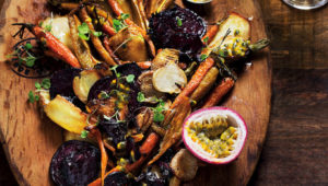 Read more about the article Roast carrot salad with beetroot, parsnips and granadilla tzatziki
