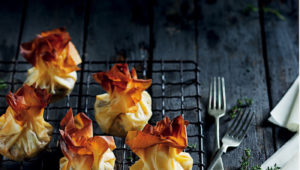 Using fresh in-seaon fruit like quava and blueberries makes these miniature fruit phyllo pastries such a delightful treat for your morning soirée.