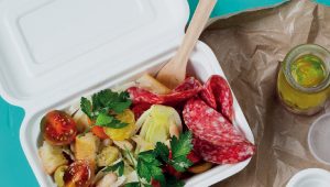 Make lunches (and leftovers) a breeze with this salami panzanella salad with sweet dressing! Using up old bread have never been easier.