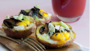 This twice-baked egg and mushroom potatoes recipe is a great hangover cure! it might take a bit of prep, but trust us it's worth it!
